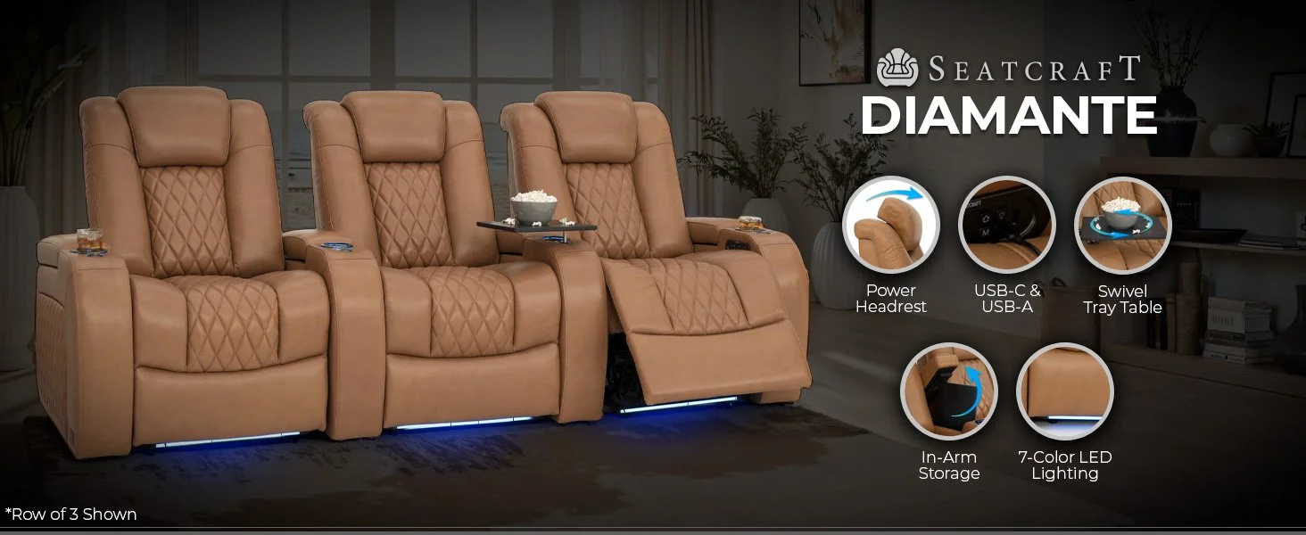 Hero Image: Designed a bright, lifestyle-focused hero image showing the Diamante in a cozy, modern living space. Kept text minimal (logo + collection name).